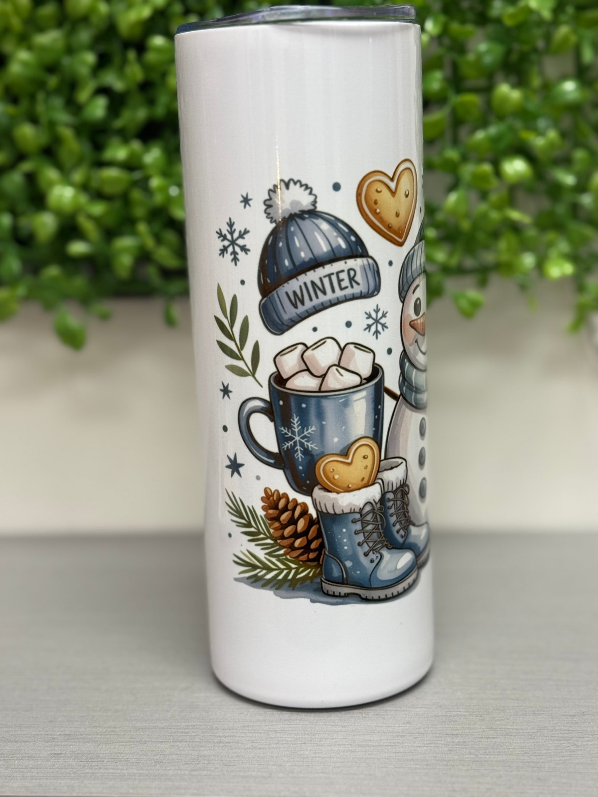Bring winter magic to your daily routine with this charming Frosty the Snowman 20 oz. tumbler. Featuring iconic blue tones and festive holiday imagery, this cozy drinkware keeps your beverages at the perfect temperature while celebrating the season. Ideal for coffee, hot cocoa, or cold drinks, it's a must-have for snowman enthusiasts and holiday collectors alike. Durable construction ensures lasting enjoyment through countless winter mornings.